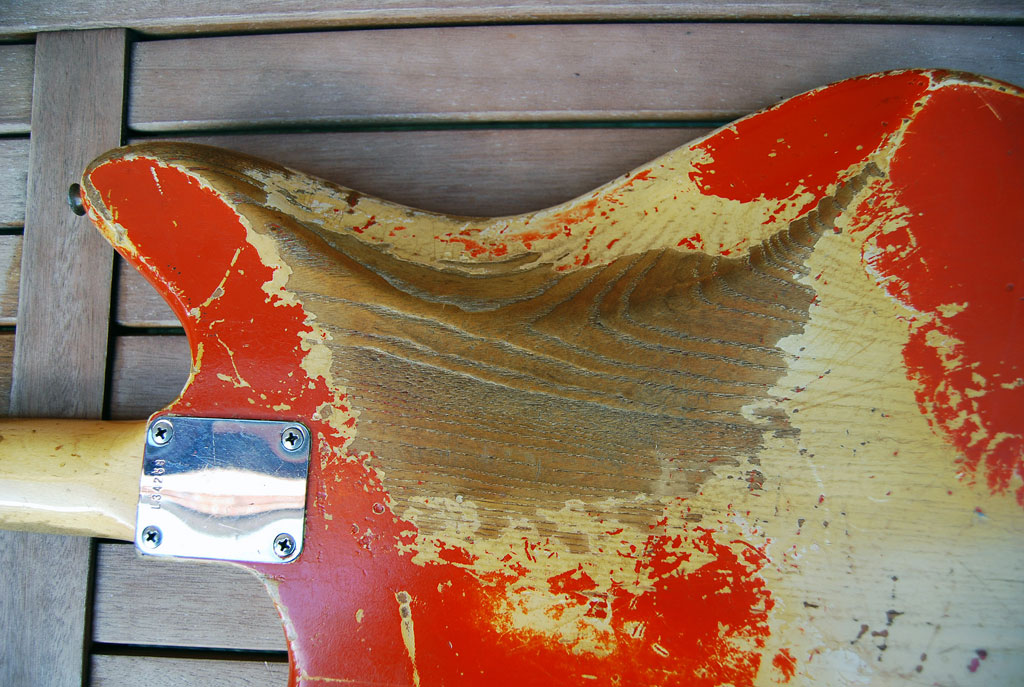 - fender jaguar 1964 blonde with red overspray – ash body detail