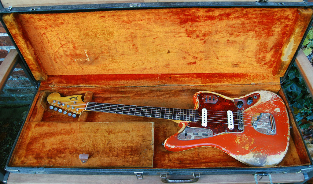 - fender jaguar 1964 blonde with red overspray – original black no logo tolex case