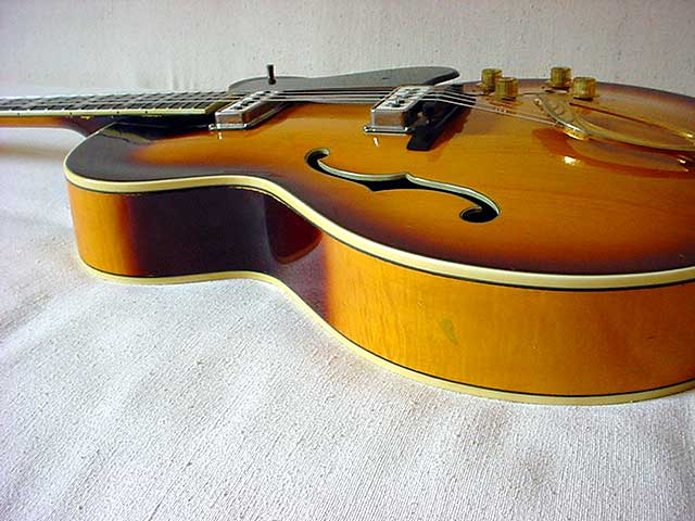 Seit ich Ende der 80er Jahre Dave Gonzalez den Gitarristen der Paladins mit einer 50er Jahre Guild X-500 sah, war ich unterschwellig auf der Suche nach solch einem Modell. Durch Zufall habe ich diese dann auf der Vintage Guitarshow in Veenendaal/NL 2003 gesehen und gekauft.