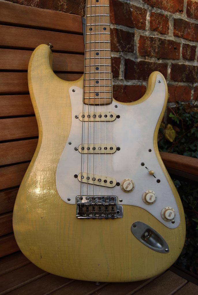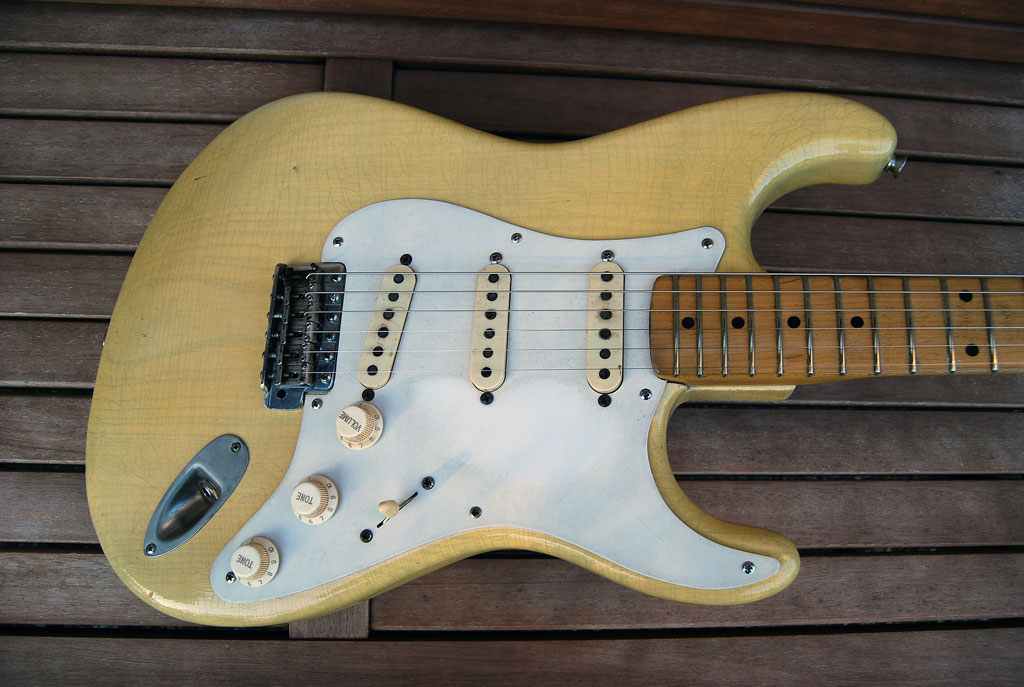 - Altes blonde refinish aus den 70er Jahren des letzten Jahrhunderts (Body ist Erle, original blonde Gitarren haben einen Eschenbody)