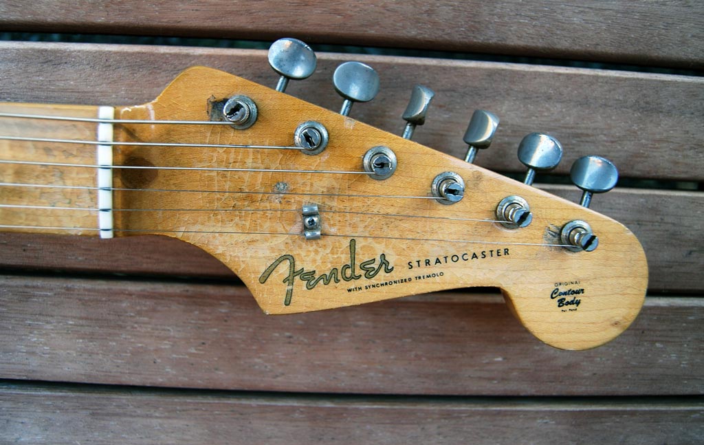 - fender stratocaster 1957 blonde refinished – headstock with replacement logo